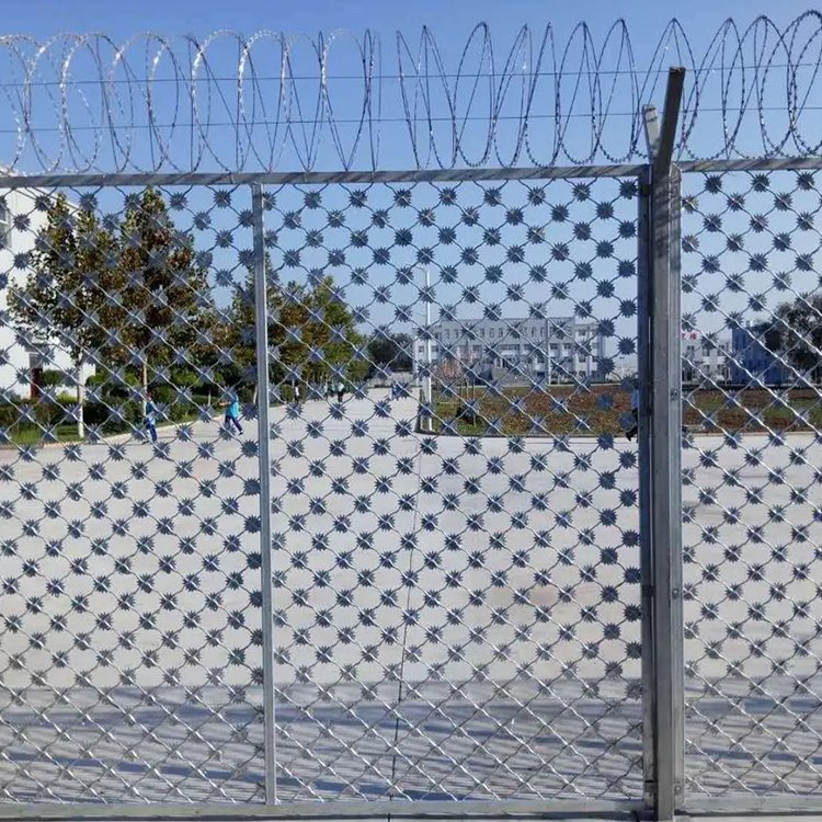 看守所武警巡邏道刀刺網,一般都是通過看守所來采購,施工安裝在公安局武警巡邏道的圍墻上面。看守所武警巡邏道刀刺網內外防護,或者只在監墻內側加巡邏道刀刺網。