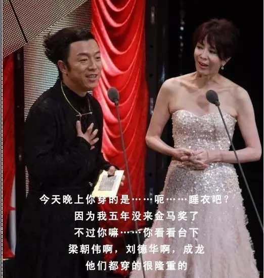 鄭裕玲暗諷他出席金馬獎為什么穿得像睡衣,他說"金馬獎變得像家一樣,回到家里要穿得舒服一點"。