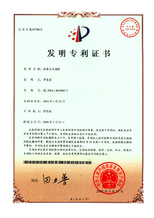 [2008]榮獲中國擊劍隊(duì)指定專用地板;榮獲中國發(fā)明專利證書;榮獲美國加利福尼亞州空氣委員會(huì)授予的CARB證書