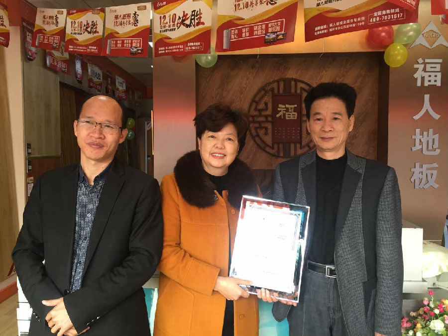 20161128日,由中林福人與福建電視臺經濟頻道《完全家裝》共同攜手的福人地板最美專賣店評選來到中國特色美麗城市---龍巖,福人地板銷售總監石開洪先生、福建大區經理洪鼎忠先生、市場部梅蔚軍先生、福建區域經理陳鏵先生參與此次活動。