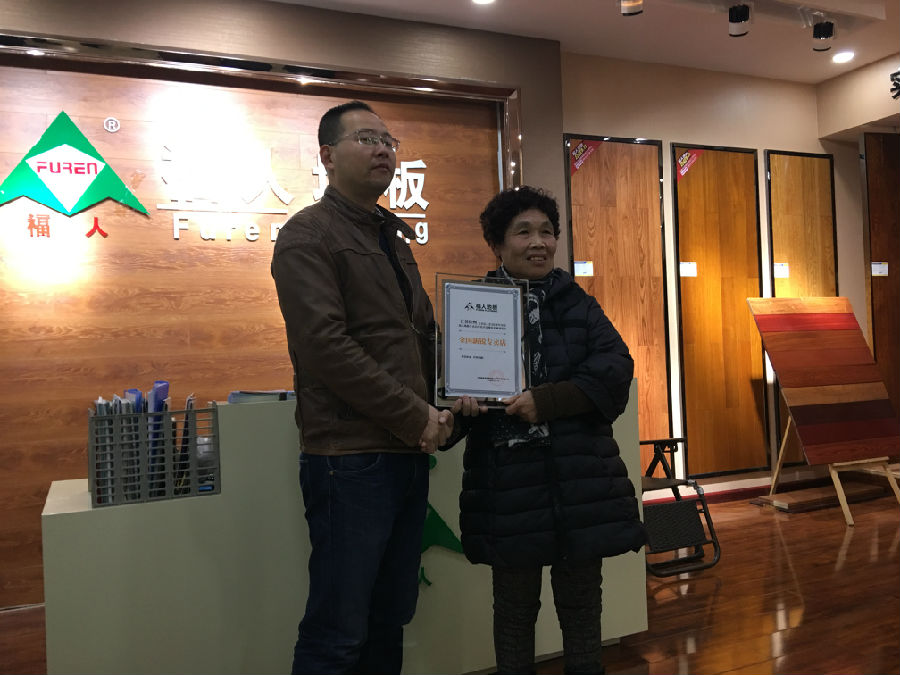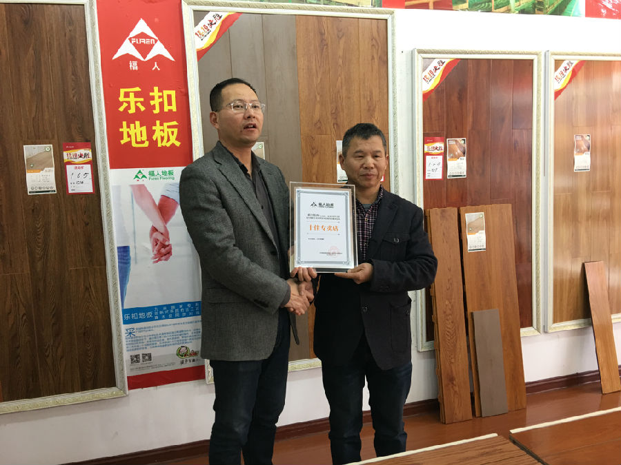 因為福人地板央視廣告,王總接觸了福人地板,并于2015年開設面積180㎡的專賣店,王總腳踏實地,緊跟公司步伐,調整實木比例,銷量直線上升,實木單占全店銷量的60%,打開了福人地板在東陽的品牌知名度。東陽福人榮獲“全國新銳專賣店”榮譽稱號。