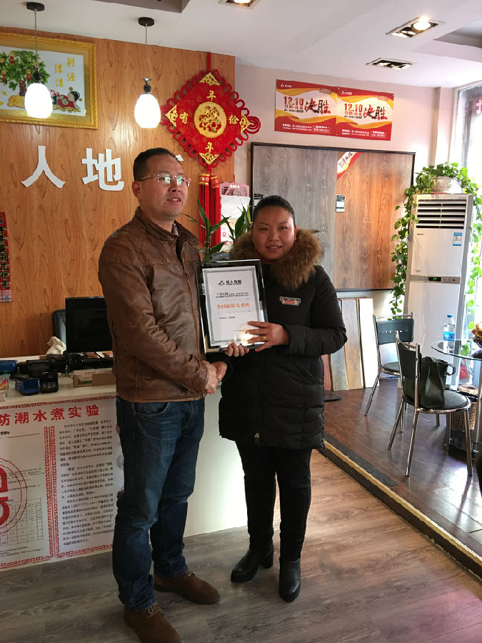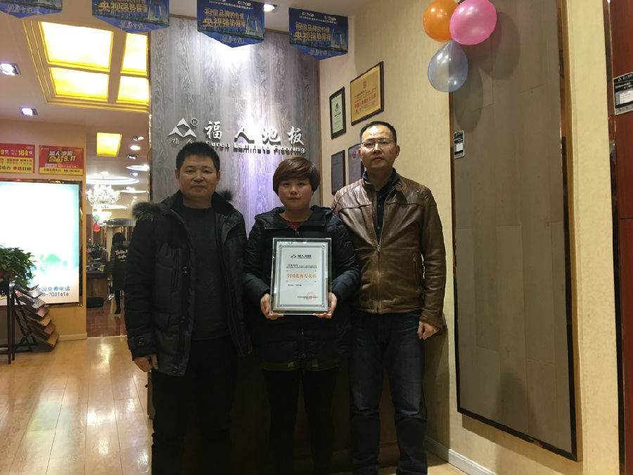 句容張總憑借著嫻熟的導購經驗和管理經驗、積極踴躍發展當地建材聯盟、長期與當地裝飾公司開展長年戰略合作關系等方式,陸續超額完成公司的既定目標,讓福人地板在當地一步步變成家喻戶曉的木地板品牌。句容福人榮獲“全國優秀專賣店”榮譽稱號。