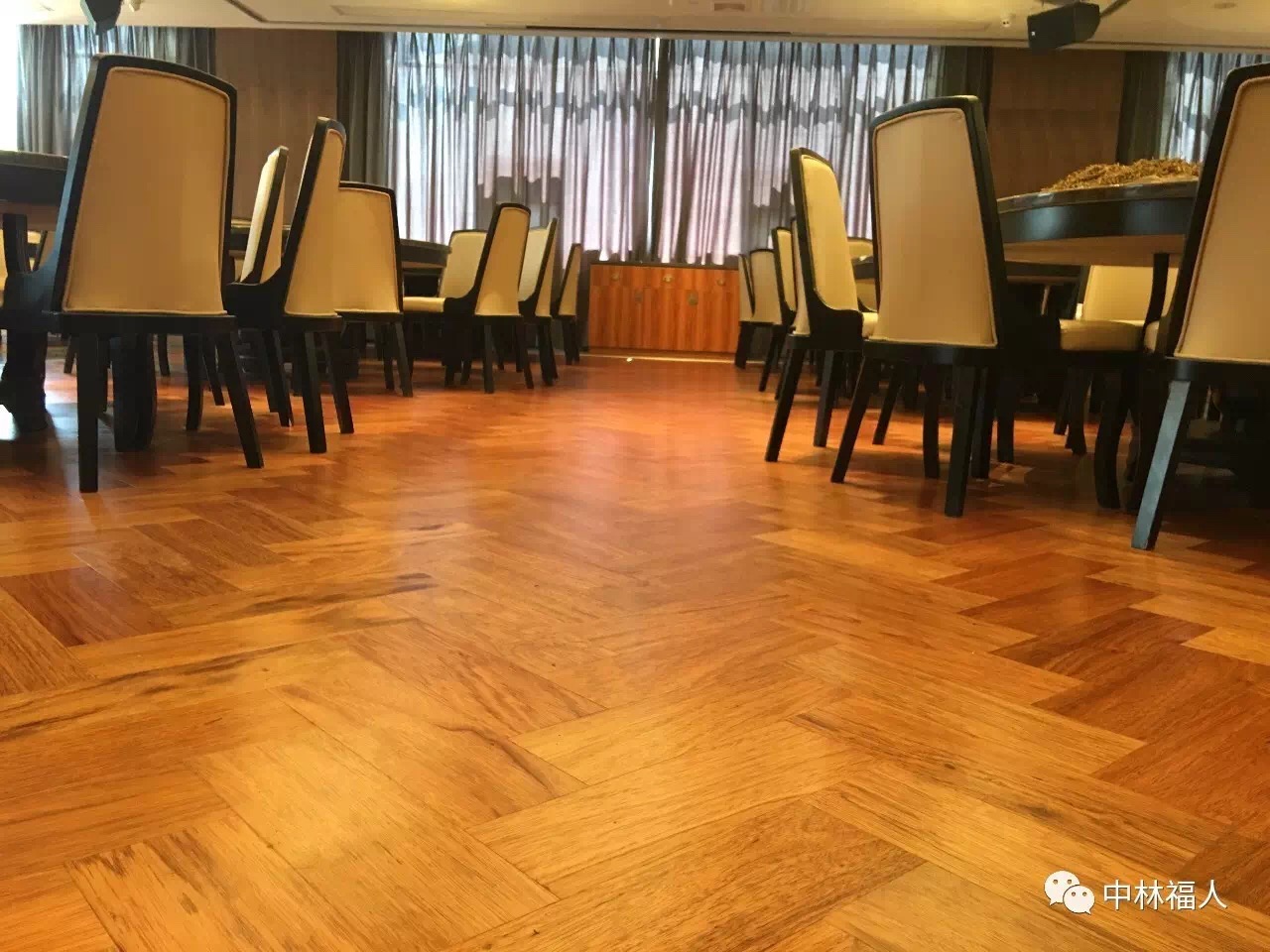 “福建海中舟實業(yè)發(fā)展有限公司”已成為福州當?shù)匾?guī)模最大的海產(chǎn)活鮮工坊之一。 海中舟在二環(huán)路新店裝修中,本著健康、環(huán)保和高端的裝修理念,在餐廳區(qū)域選擇了福人·科力士實木地板的金線海棠系列,人字拼的鋪裝風(fēng)格,更彰顯整體裝修風(fēng)格的高端和大氣。