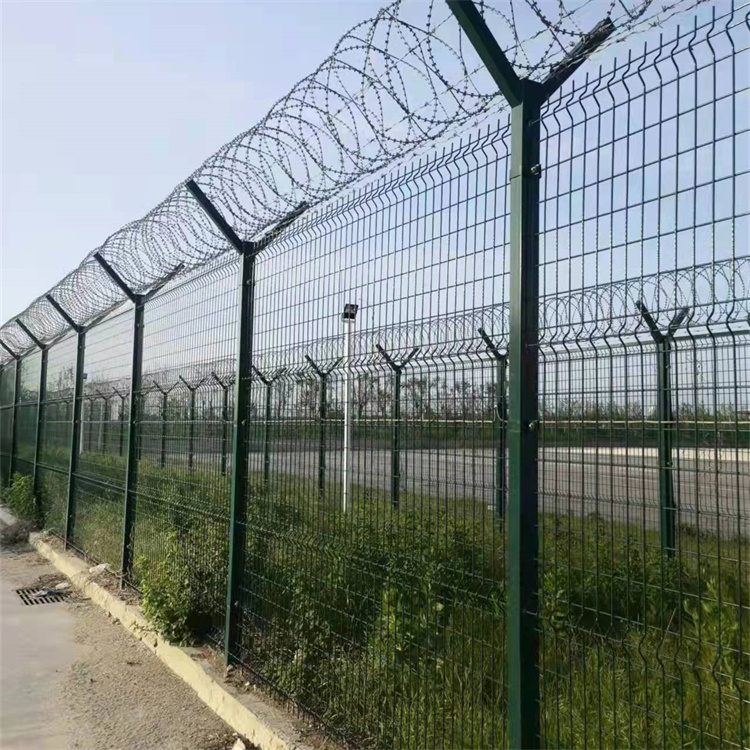機場圍界網的用途:機場護欄網主要用途:機場封閉、 私人地域、監獄護欄網、軍事重地、場區圍網、 開發區隔離網使用。 是一種高戒備高安全的隔離網種類。