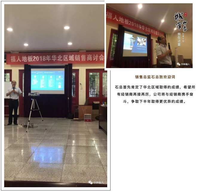 2018年7月9日-7月11日福人地板華北區域銷售商討會在天津楊柳青莊園順利召開!此次會議由福人地板華北團隊策劃、執行。福人地板銷售總監石開洪先生、市場部總監葛旭東先生、銷售副總監洪鼎忠先生、華北區經理魏東亮先生、北方區所有區域經理及華北區優秀經銷商參與此次會議。