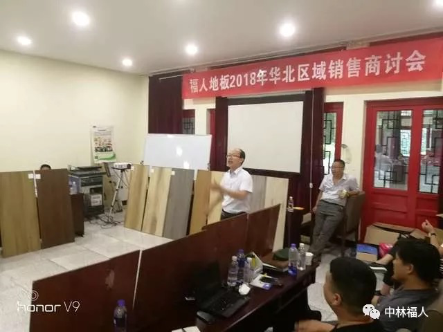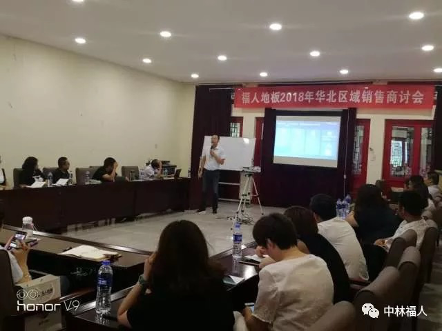 14:00-16:00華北區經理魏總進行了地板專業知識培訓。強化地板如何分類、木材及樹種如何分類、科力士地板的特點、2018年福人地板新品特點等,魏總都詳細講解,分享。