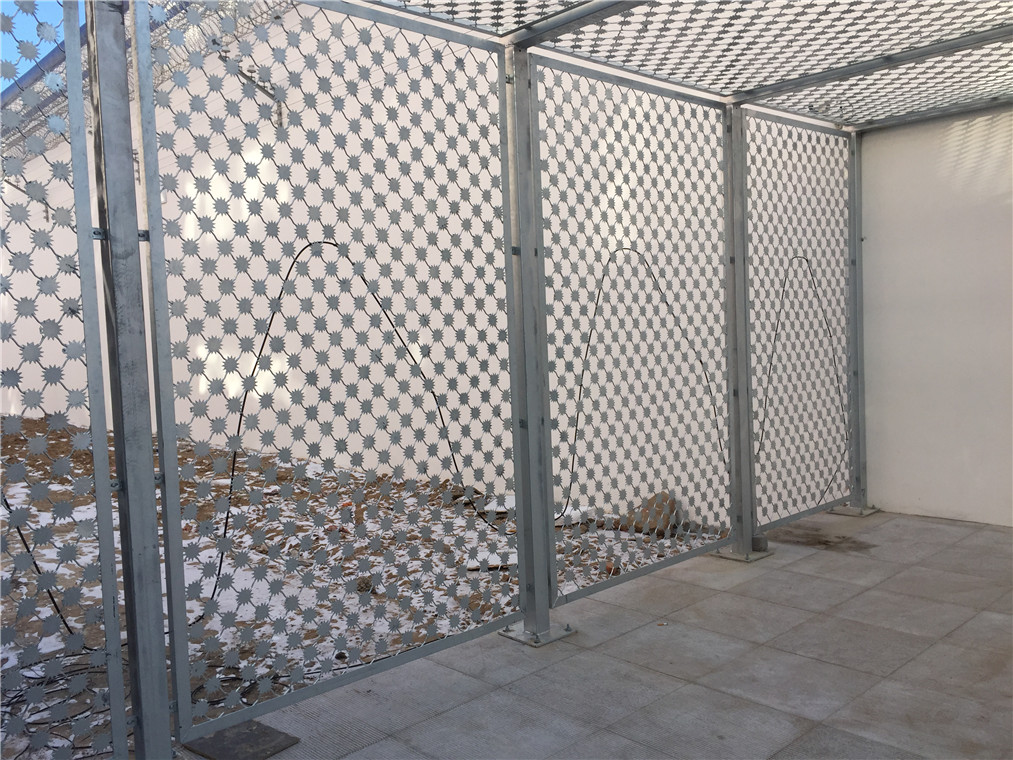 像梅花刺片的隔離網(wǎng)大家應該都不陌生,經(jīng)常在監(jiān)獄里應用,南方很多監(jiān)獄內(nèi)墻都是用的這種。我們北方很多是AB大門的通道使用這種梅花刺片隔離網(wǎng)。防攀爬防爆效果非常好,適合在這些特殊場合使用。