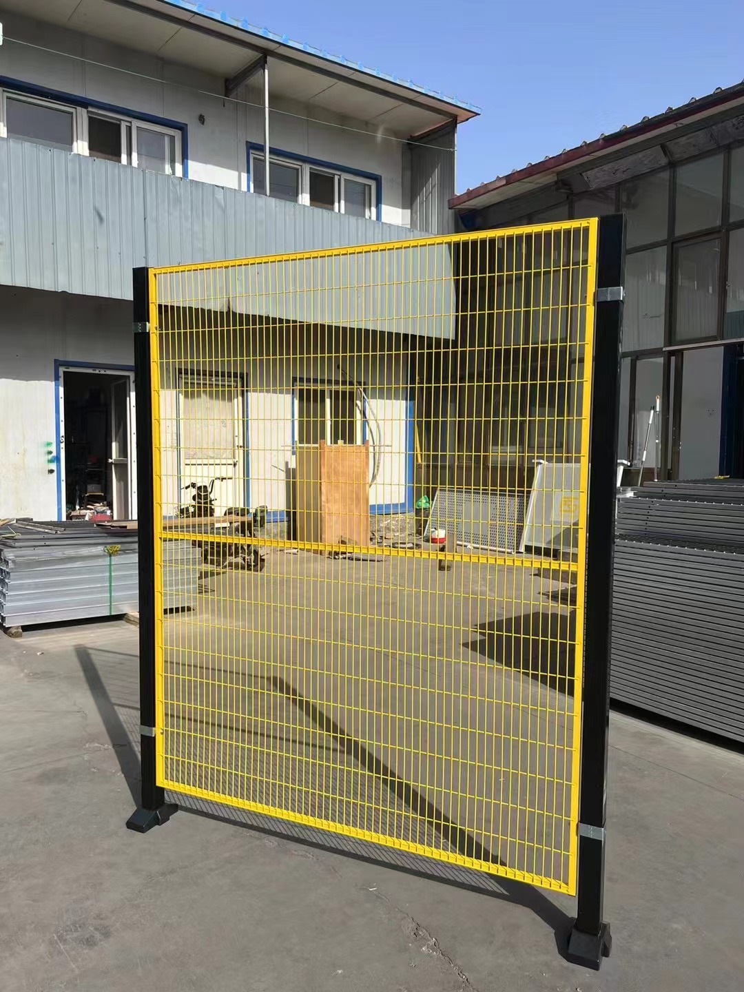 車間護(hù)欄網(wǎng)又稱為車間圍欄網(wǎng)、倉庫隔離網(wǎng)、隔離柵等。用來隔離貨物,圍擋機(jī)器用,用與位置主要起醒目警示的作用,多用醒目的黃色作為主打色。材質(zhì)多選用低碳鋼絲,電焊或編織而成,四周配以邊框(可不選)來使用,以起到圍擋警示的作用。