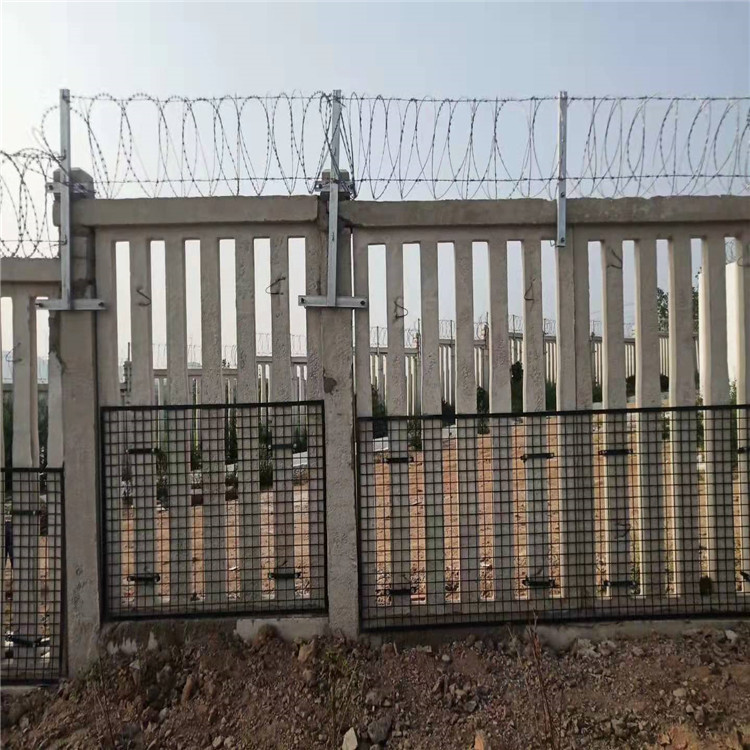 高鐵刺絲滾籠安裝在鋼筋混凝土護欄的下邊緣與上邊緣之間的垂直間距為0.05m,其通過螺紋連接夾與縱向拉桿連接,該拉桿牢固地固定在支架上。鋼筋混凝土圍欄設(shè)有金屬絲籠,剃須刀桿,縱向拉桿,連接扣和支架。刀片由0.5 mm厚的Q195鋼板制成,支架放置在圍欄的柱子和中跨,跨越3米,其他只放置在柱子的上部。熱浸鍍鋅防腐處理和熱浸塑料的標稱包裝與混凝土柱上方的接頭一起進行包塑。
