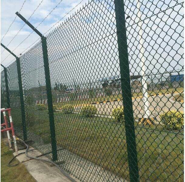 防護(hù)區(qū)周界柵欄主要由立柱、支撐、編織網(wǎng)、曲臂、刺絲、刺刀籠、系緊裝置及固定裝置等構(gòu)件組成。