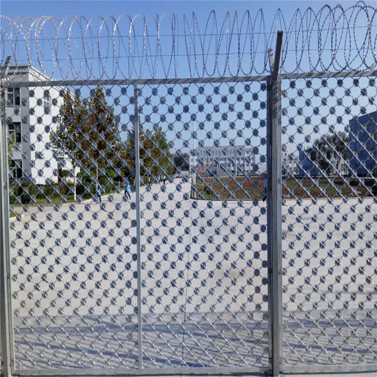 監(jiān)獄防攀爬護欄網(wǎng)是菱形的網(wǎng)格,太陽花刺片由Q235低碳鋼板沖壓而成,其直徑大于7.5cm,刺片厚度為1.3mm。網(wǎng)格尺度為85*85mm , 100*100mm也可定制.監(jiān)獄防攀爬護欄網(wǎng)的結(jié)構(gòu)和柱子選用邊耳銜接方式固定,邊耳選用扁鐵加工,規(guī)格為50*50*5mm.側(cè)耳的螺絲孔可根據(jù)裝置要求進行調(diào)理,調(diào)理距離不小于。側(cè)耳的固定螺栓是直徑14mm * 50mm的熱浸鍍鋅螺栓。立柱由Y形鍍鋅鋼管制成,鋼管150*150*8mm網(wǎng)架的尺度為60*60*2.5m.監(jiān)獄防攀爬護欄網(wǎng)的尺度為2500 * 3000mm,4000*3000mm此外,監(jiān)獄防攀爬護.
