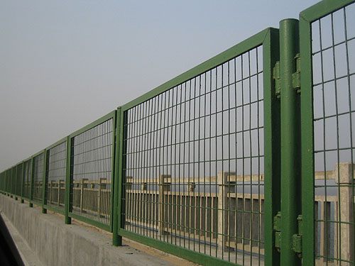 外表處理:一般橋梁護欄網選用的防腐方式有電鍍、熱鍍、噴塑、浸塑。橋梁防拋護欄網網身輕盈、造型新穎、漂亮經用,特別適合